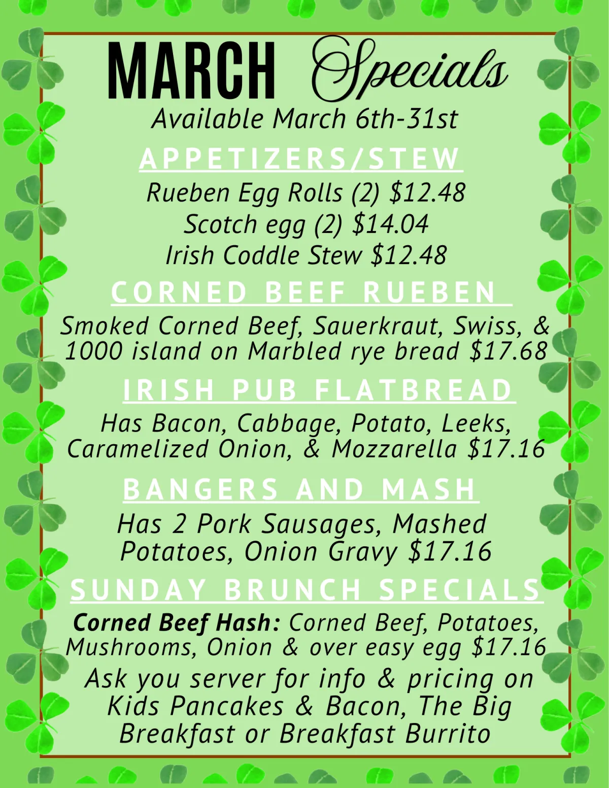 Trivia: Pub trivia starts at 6:30PM.